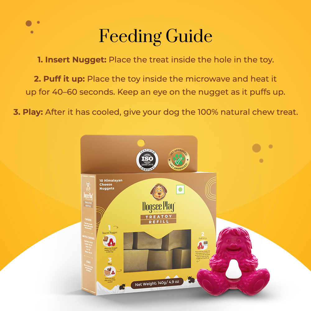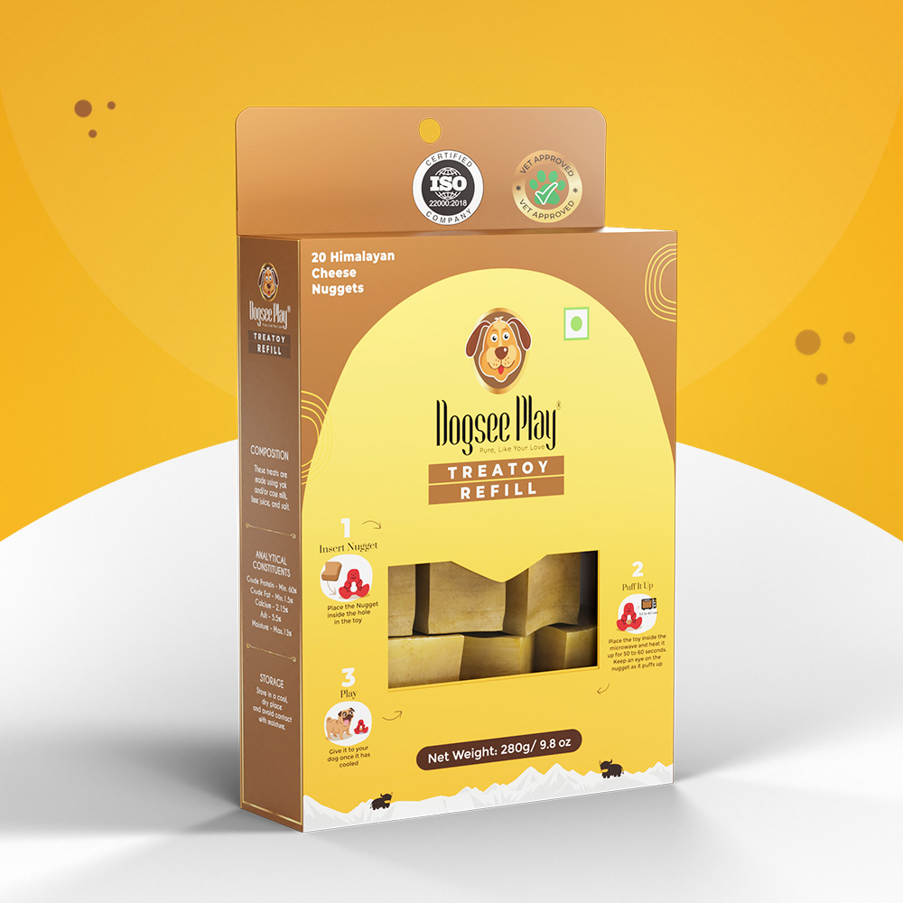This treatoy refill pack contains cheese nuggets that are handcrafted in the Himalayas according to a centuries-old recipe. For 35 days, these are smoked and sun-dried, giving them a distinct flavor and texture. These are high in protein and calcium and make an excellent dog treat.