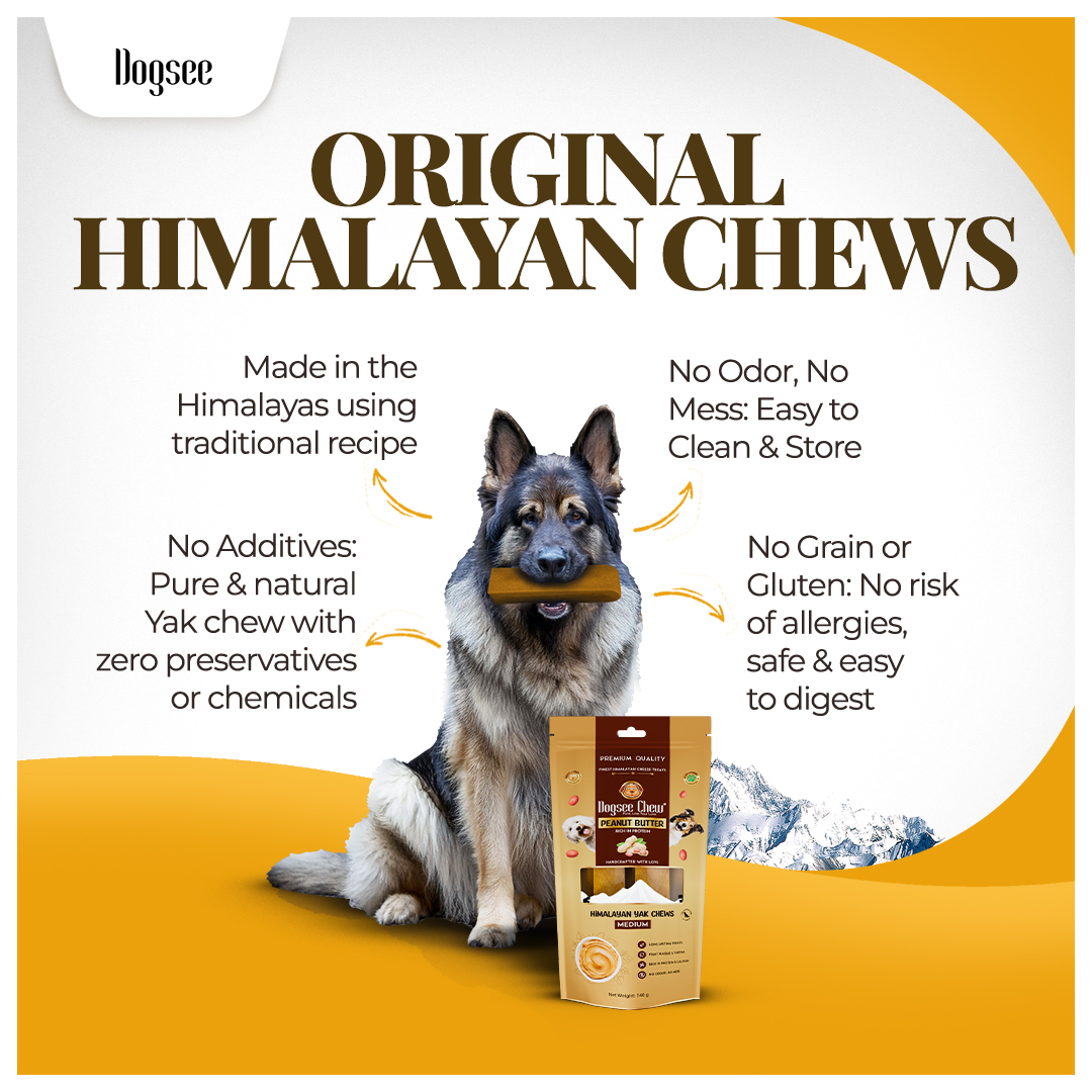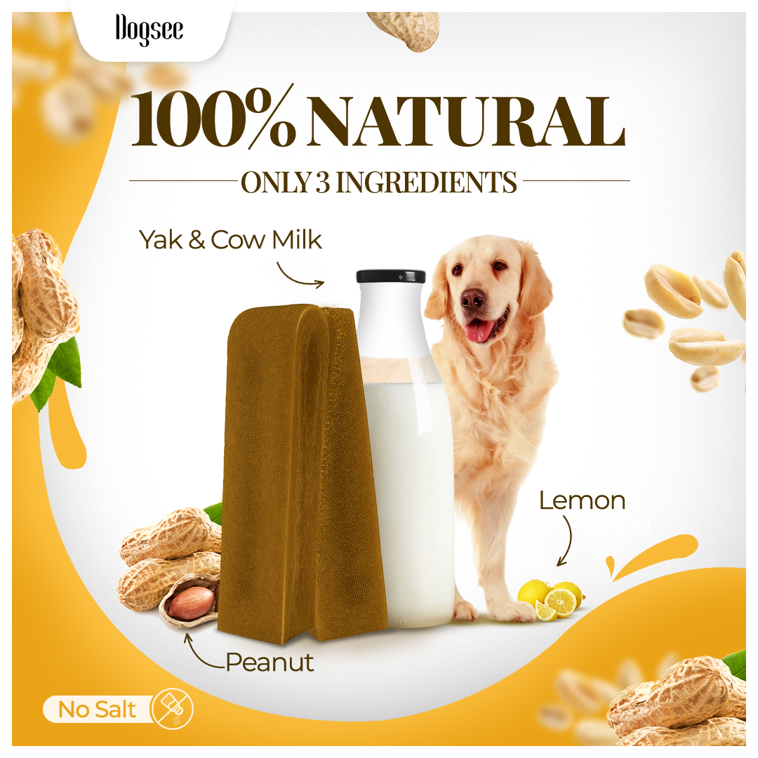 Great for Oral Hygiene - The hard texture of Dogsee Peanut Butter Yak cheese chews keep your dog’s dental health in check. They help freshen breath, remove plaque & tartar, and strengthen teeth & gums.