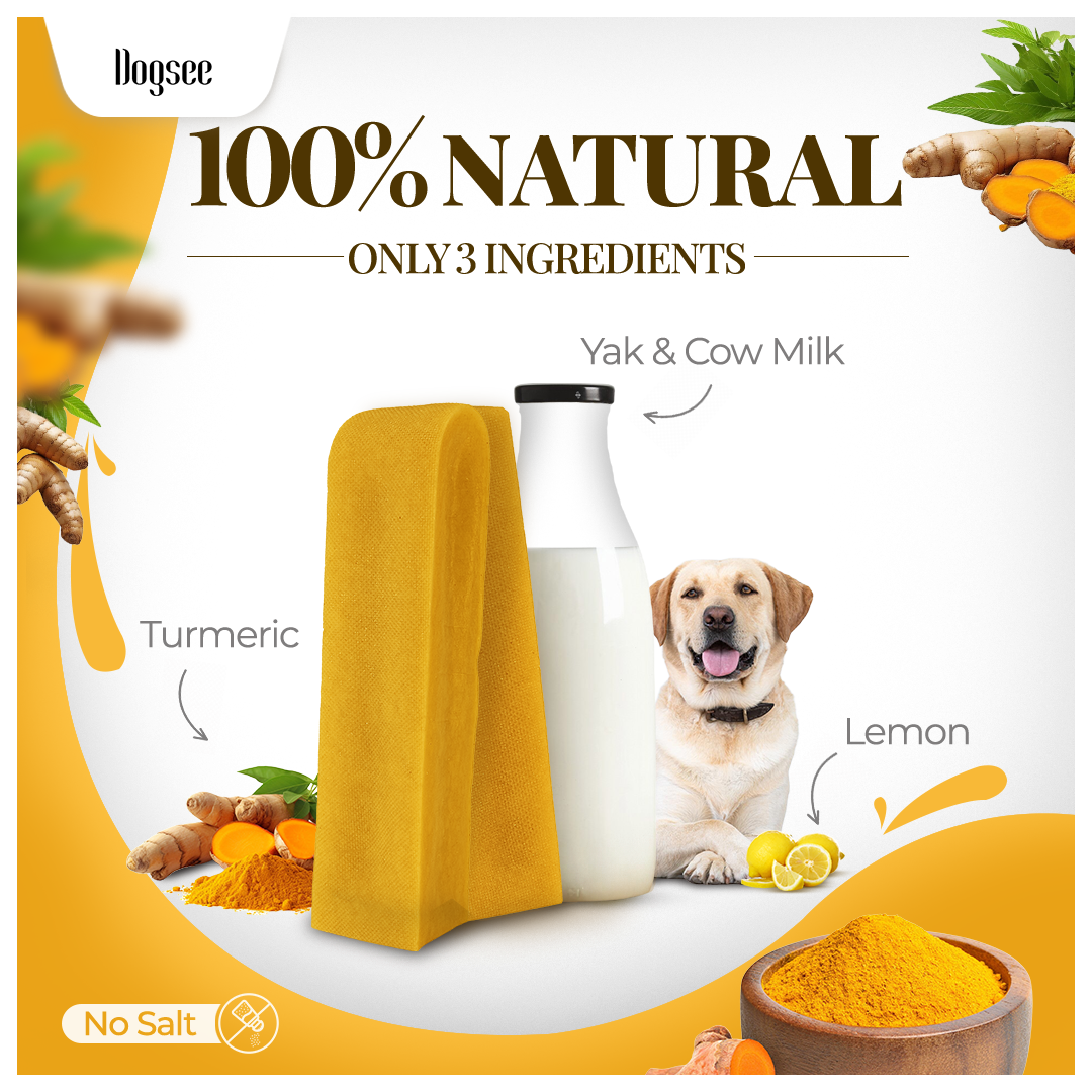 Great For Oral Hygiene - Dogsee Turmeric Yak chews are sure to keep your dog’s dental health in check. These healthy dog treats help freshen breath, remove plaque & tartar, and are ideal dog chews for teeth cleaning.